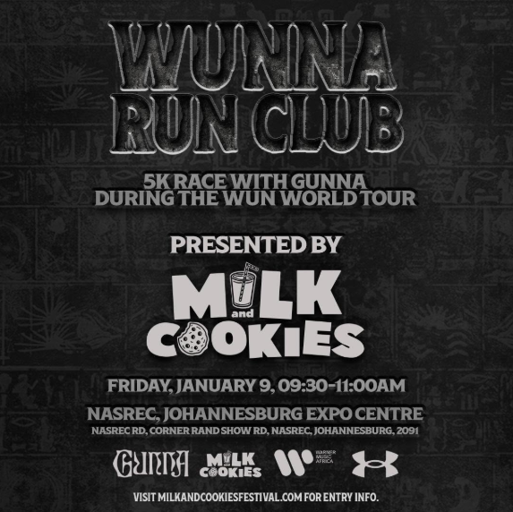 Wunna Run Johannesburg arrives alongside Gunna’s highly anticipated appearance at the Milk & Cookies Festival, where he will be the headline act. Ahead of the festival, the run offers fans a rare opportunity to engage with the artist in an intimate, community-led setting that extends beyond the stage and centres wellness..