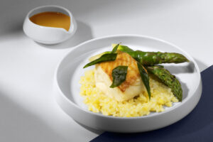 Taste is adjusted for the unique environment of flight. Salt and spice levels are carefully calibrated (our perception of both drops at altitude), textures are chosen to withstand reheating, and aromatics are amplified so the dish still sings when served.